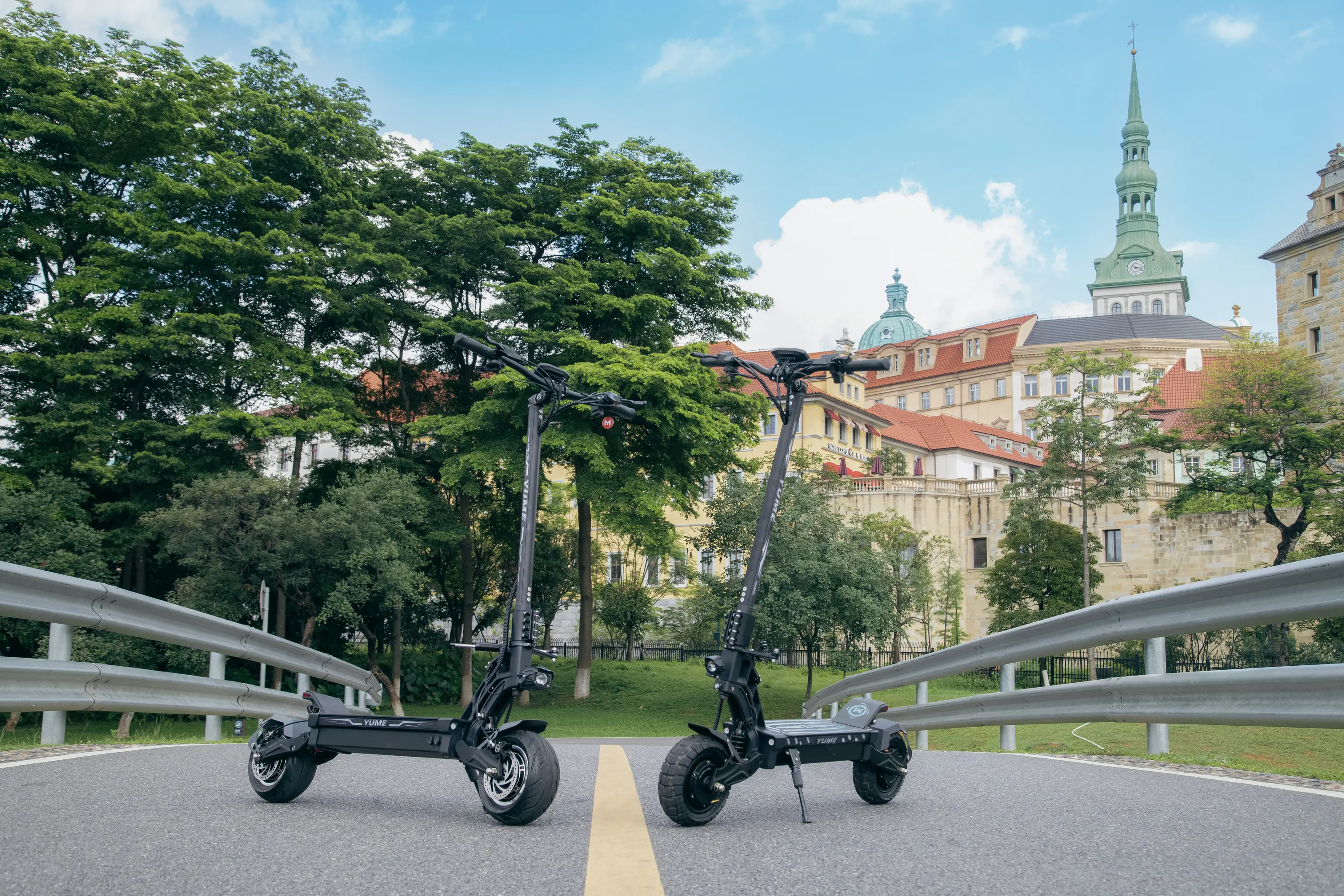 Сочетание передних и задних гидравлических масляных тормозов ZOOM, 140-миллиметровых дисков и электронного управления EBS в модели электросамоката HAWK обеспечивает отличную управляемость и эффективность торможения.