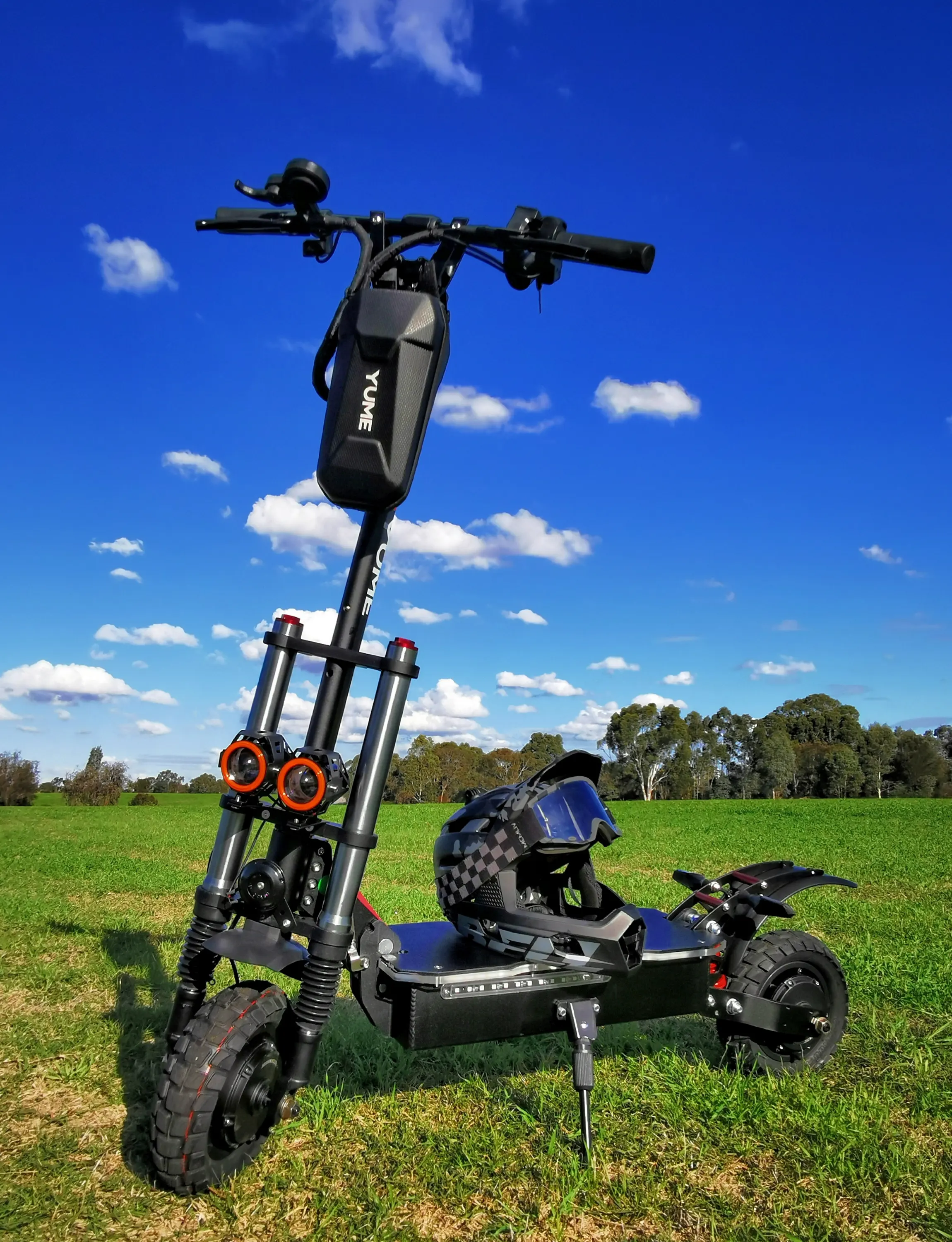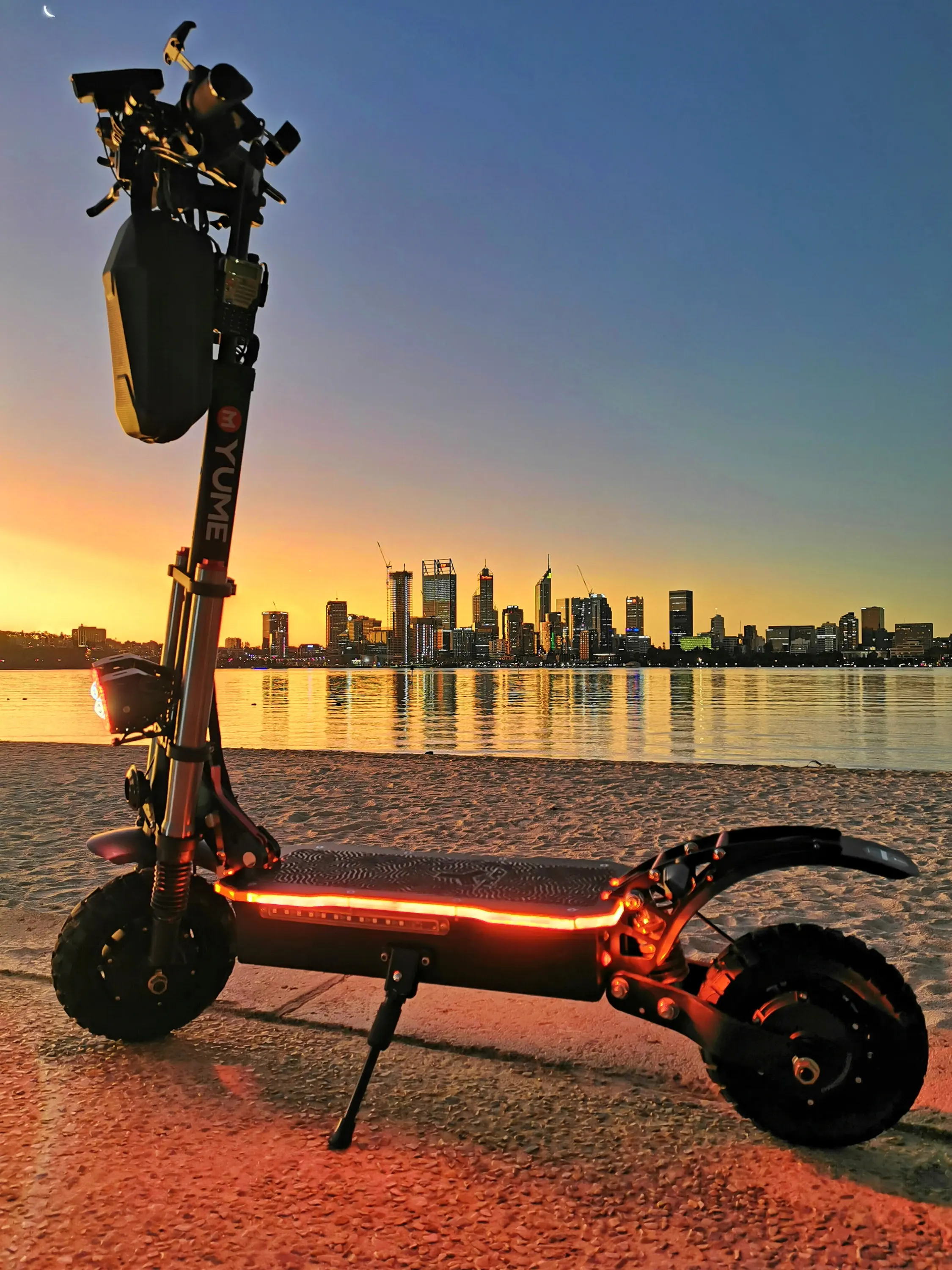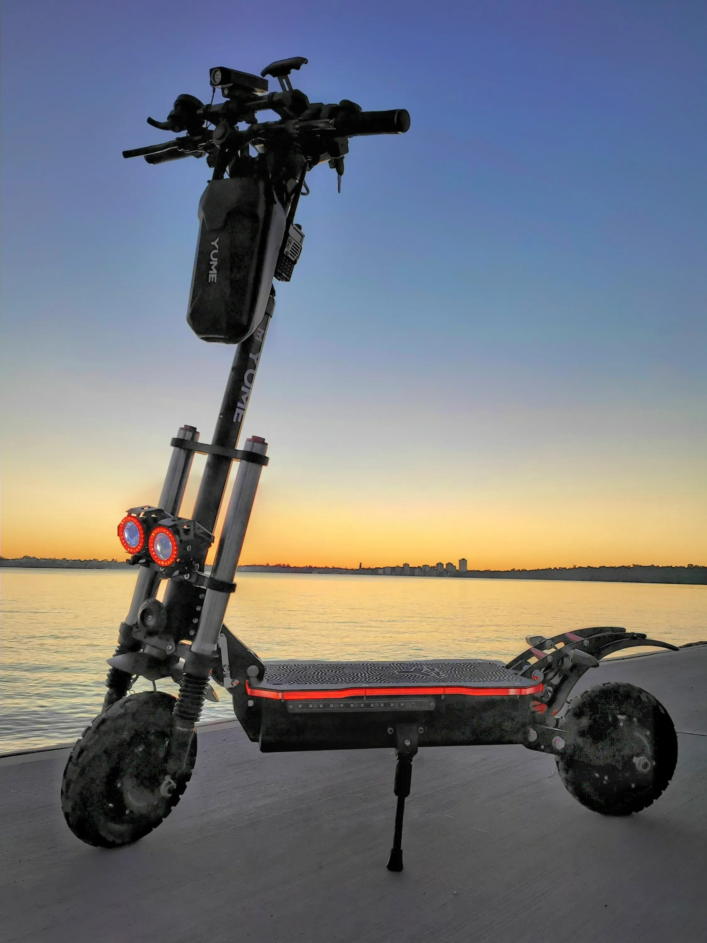 10-дюймовые бескамерные шины для бездорожья входят в стандартную комплектацию электросамоката Y10. Эти шины обеспечивают отличное сцепление на бездорожье и комфортную, устойчивую езду по улицам. Шины имеют глубокую агрессивную резьбу и чрезвычайно долговечны.Ночные поездки